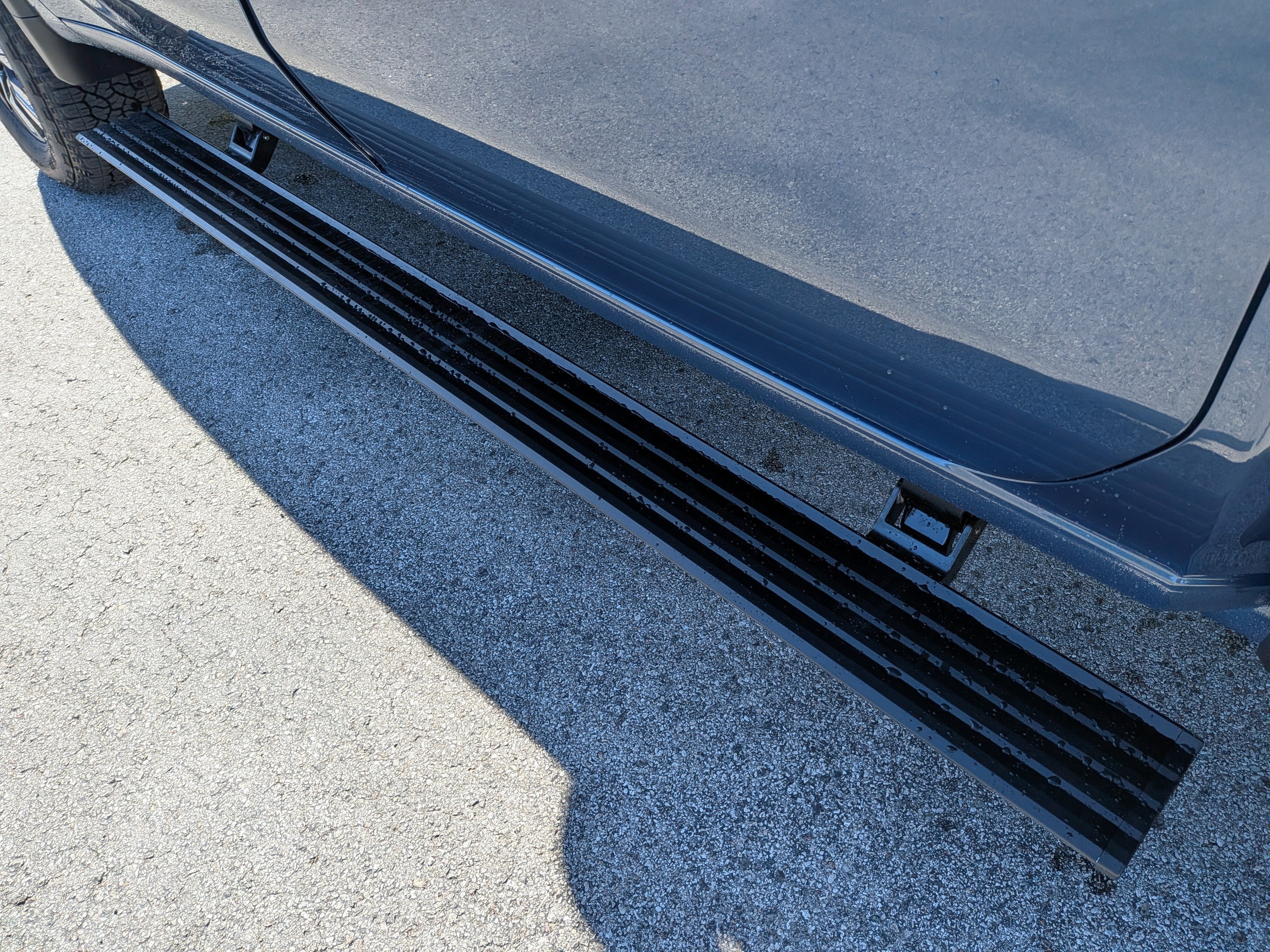 - Black textured step pads help provide secure footing