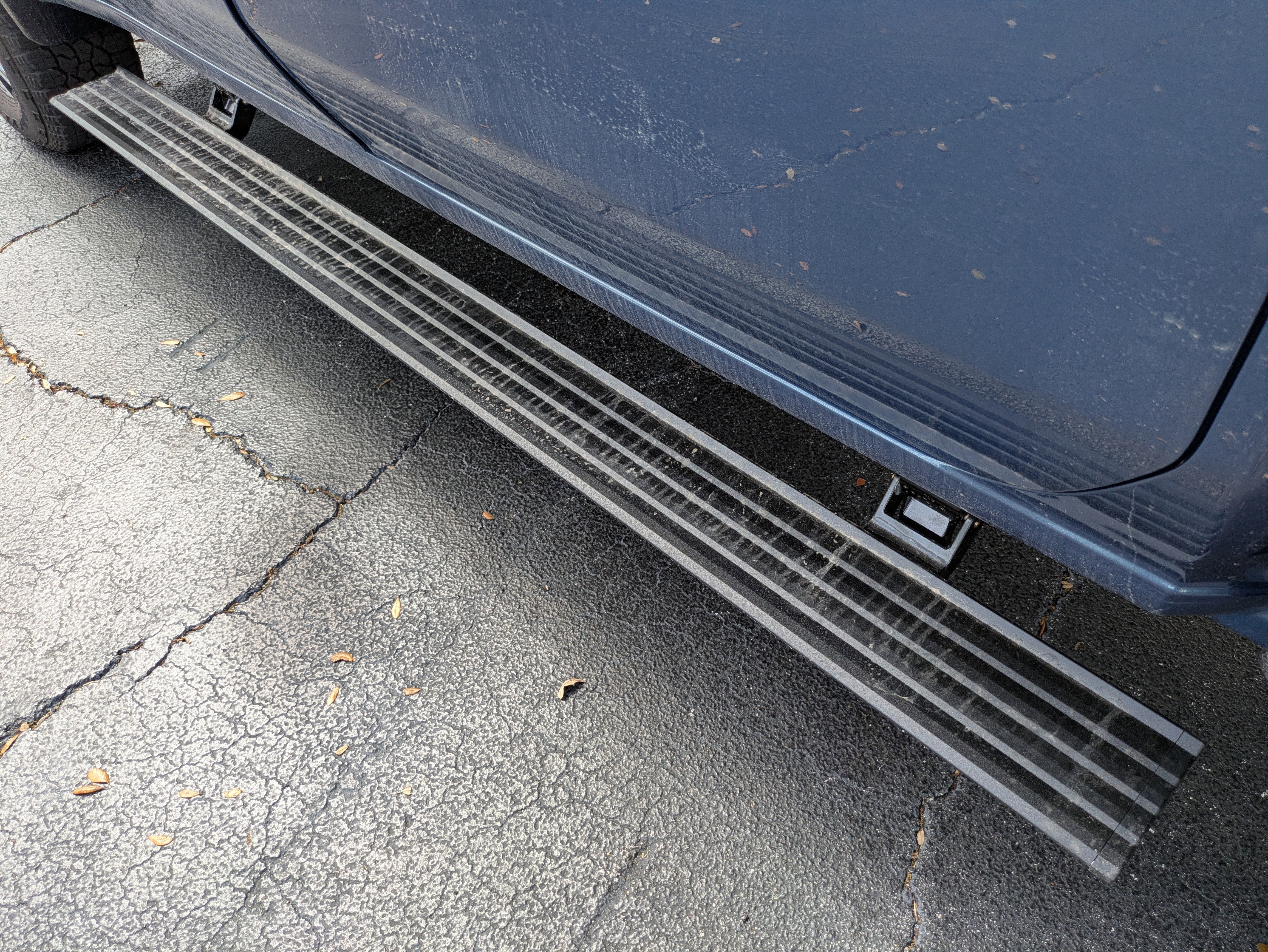 - Black textured step pads help provide secure footing