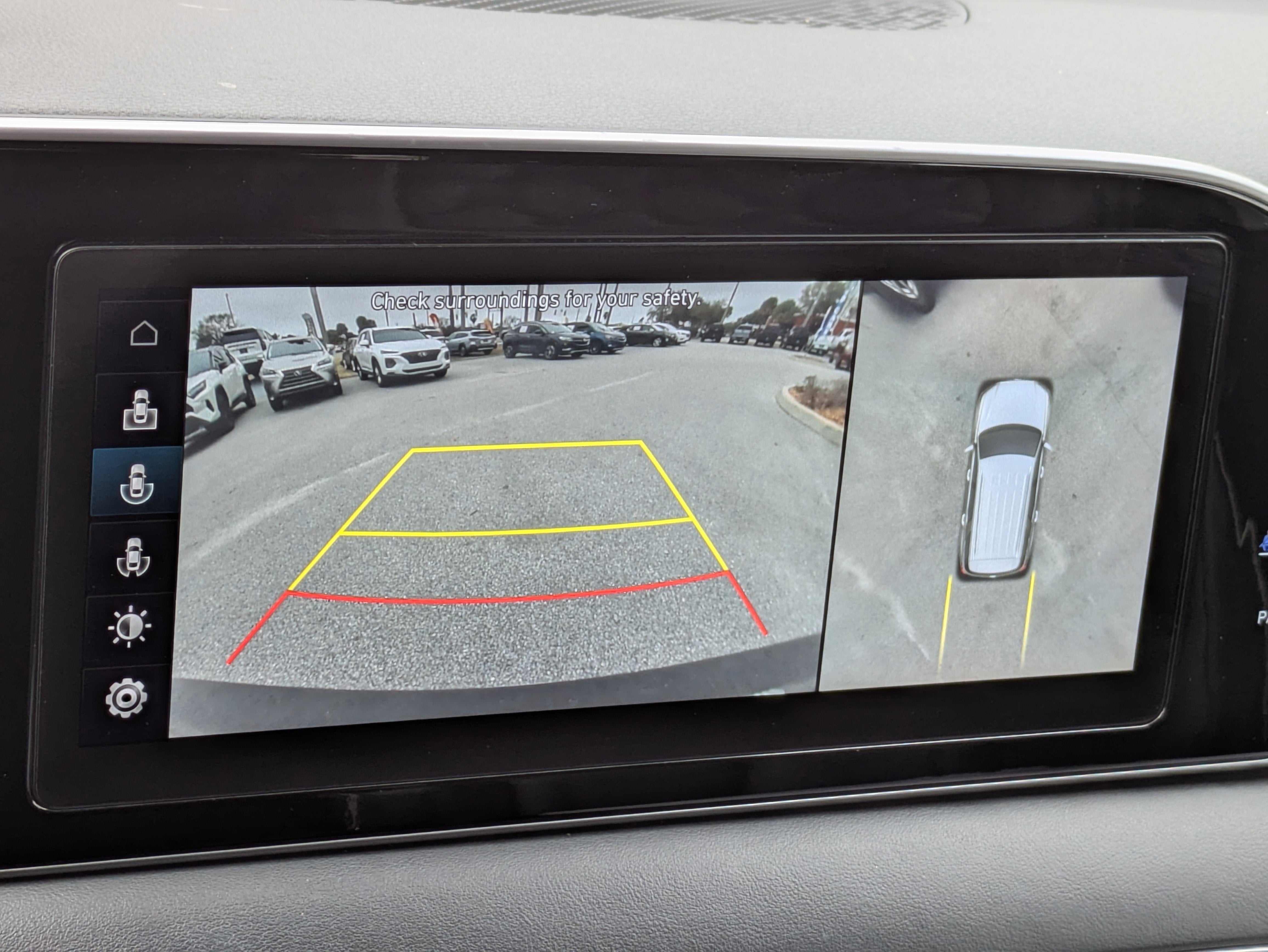 - Left side camera - Sidelong look. Left side camera displays images from the driver side of your vehicle on a central display screen. It's a second set of eyes for a clearer view, making certain maneuvers that much safer. Left side camera helps you make the right move.