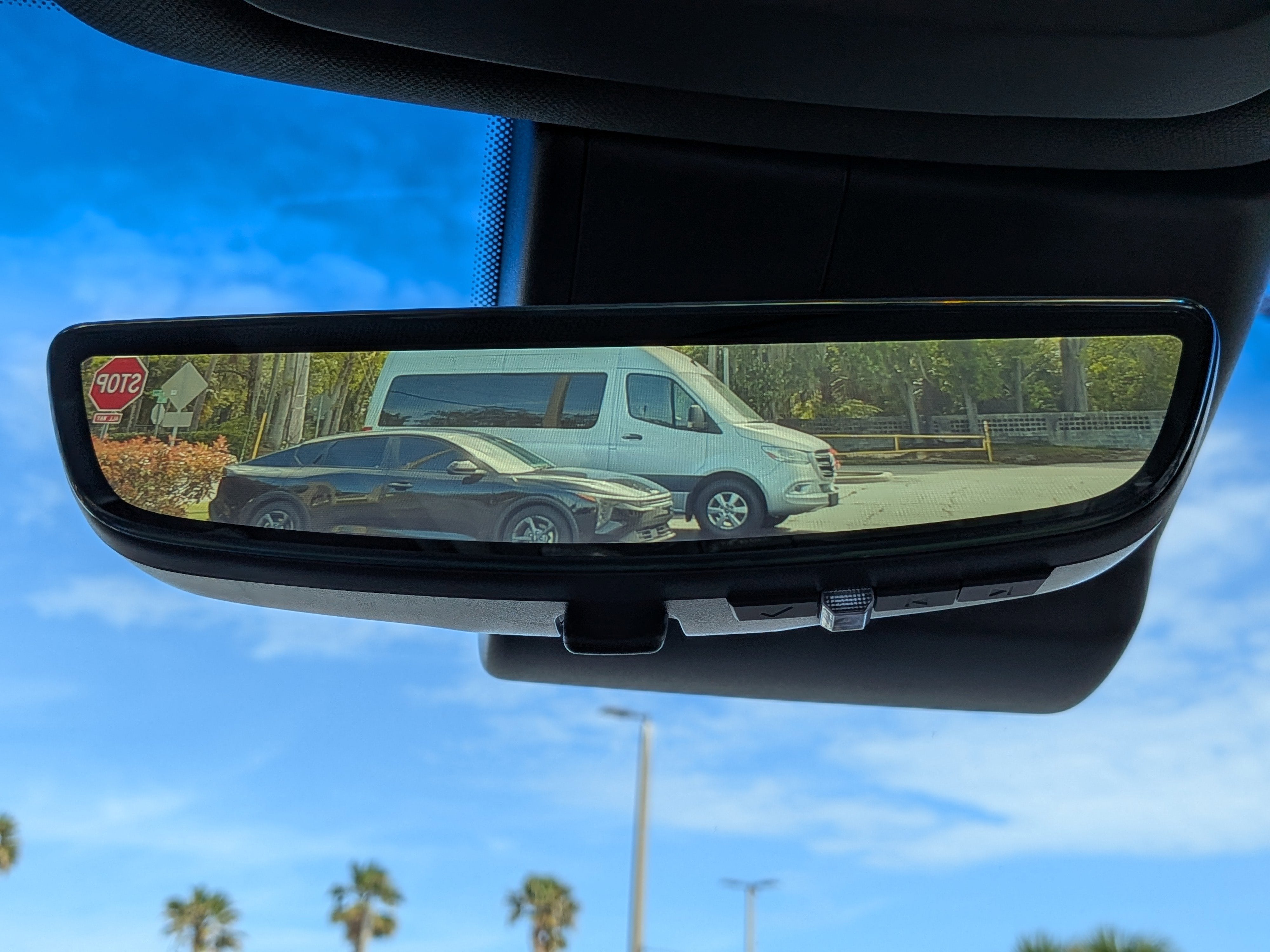 - Video-feed rear view mirror. A clearer rear-view. When your vehicle is filled with passengers and cargo it can be difficult to see out of the back window, and that can make your drive less safe. This problem is solved by using a video feed from the back of the vehicle - different from the back up camera - in order to show you what you need to see while you drive. With the video-feed rear view mirror, nothing sits between you and a clear view.